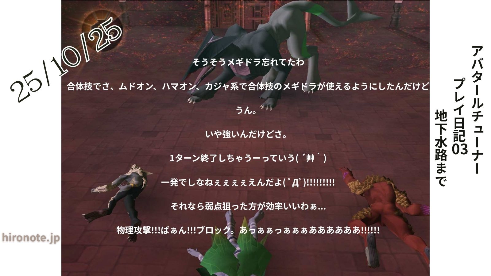 25/10/25 DDSアバタールチューナー プレイ日記03 「地下水道」で メギドラが使えるようになったけど、難易度は変わらない…