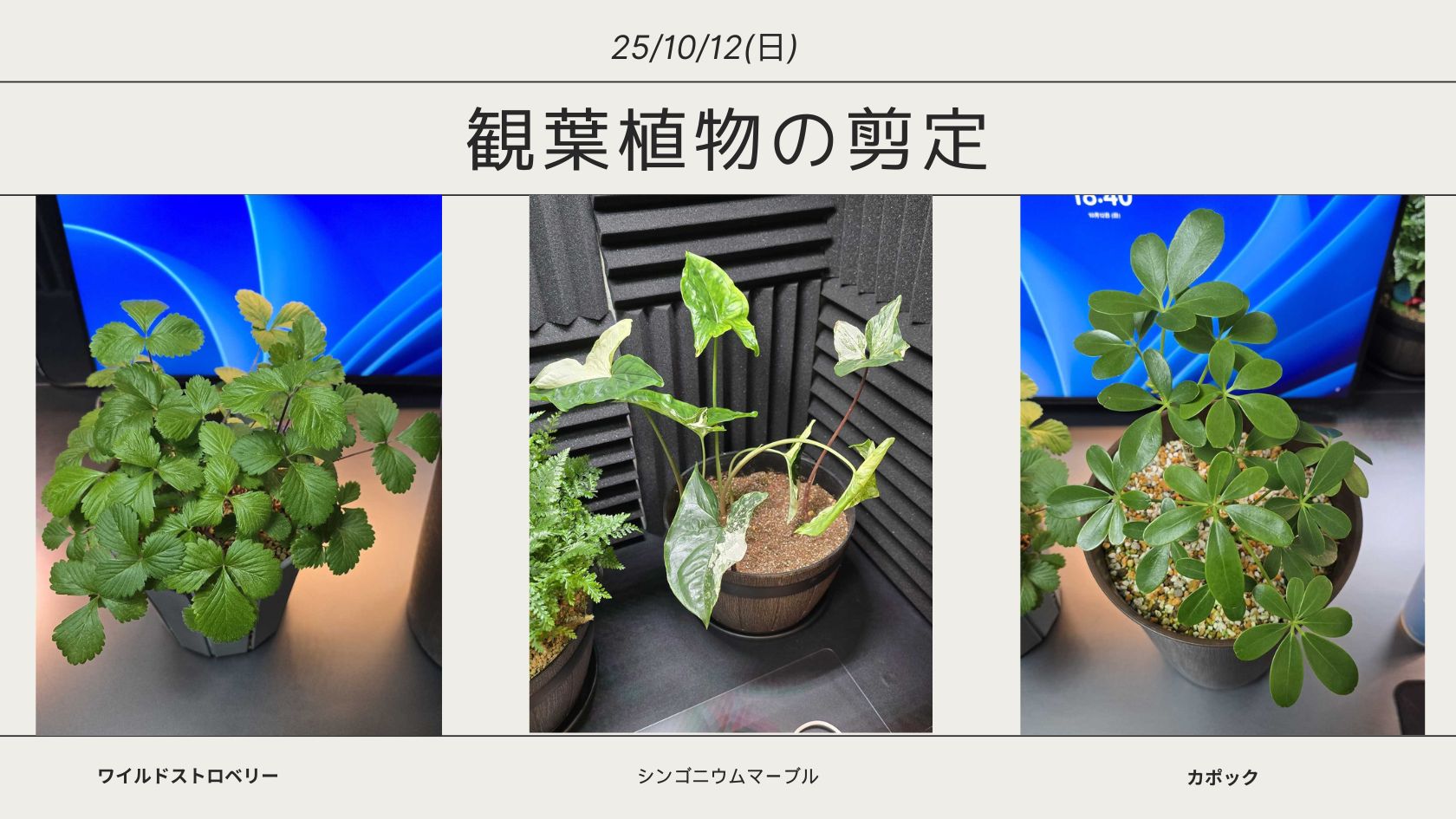 25/10/12(日) カポック、ワイルドストロベリー、シンゴニウムマーブルの剪定&植え替え