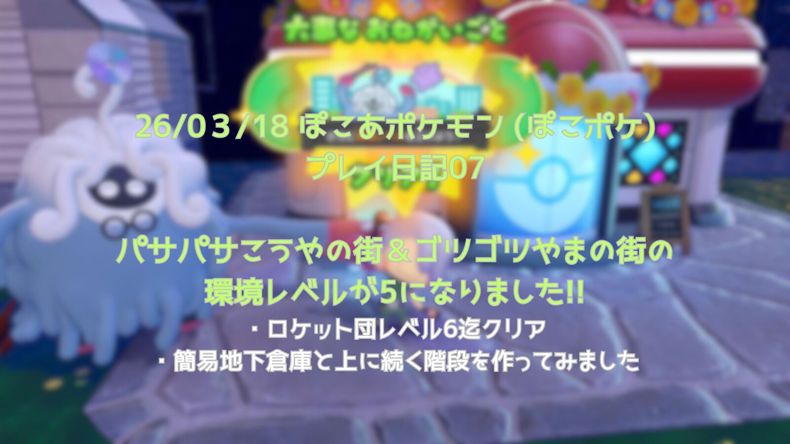 26/03/18 ぽこあポケモン (ぽこポケ) プレイ日記07 パサパサこうやの街とゴツゴツやまの街の環境レベルが5になりました!! ロケット団レベル6迄クリア