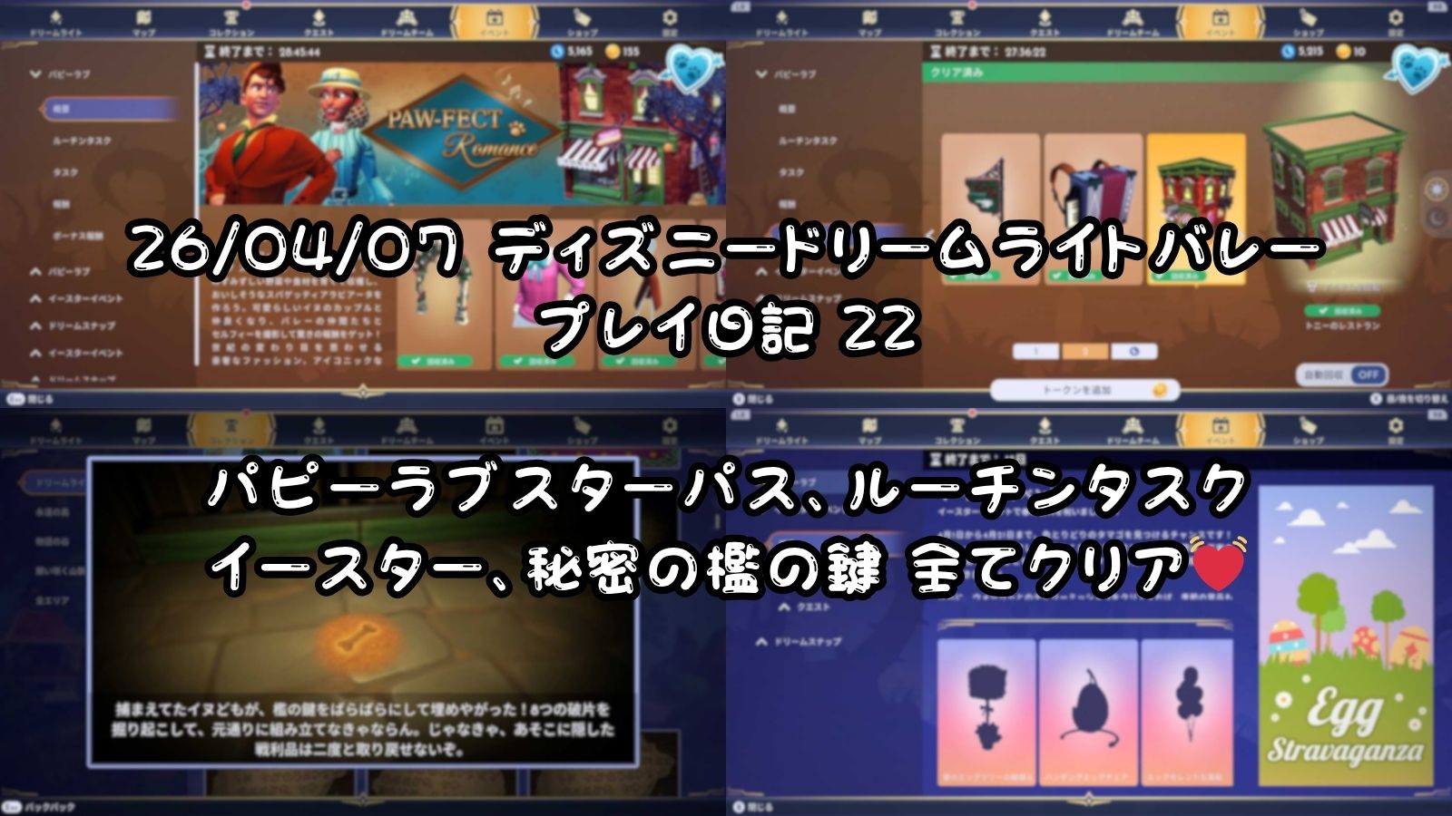 26/04/07 ディズニードリームライトバレー プレイ日記22 パピーラブ スターパス、ルーチンタスク、イースター、秘密の檻の鍵 全てクリア✨