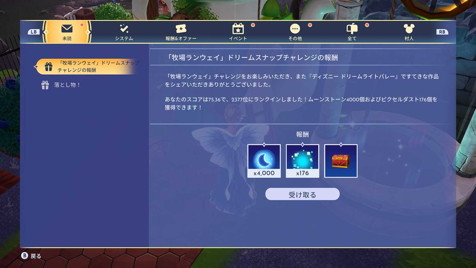 25/12/03(水) ディズニードリームライトバレー ドリームスナップ 「牧場ランウェイ」 ×4000 2377位 S75.36 久々の4,000ムーンストーン💓