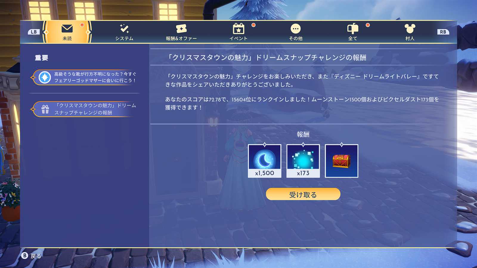 25/12/17(水) ディズニードリームライトバレー ドリームスナップ 「クリスマスタウンの魅力」 ×1500 15604位 S72.78 今回は完全にミスりました💦