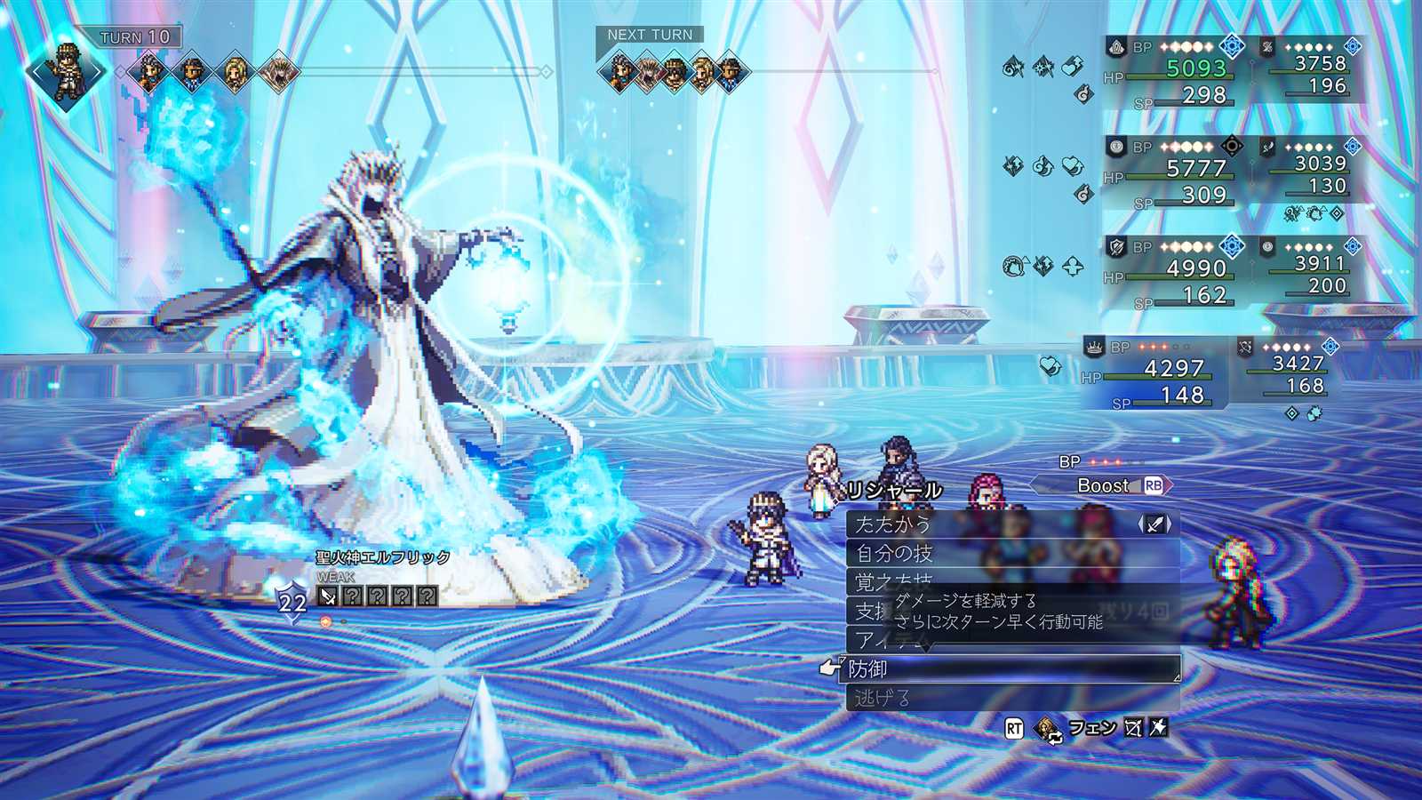 SP枯渇、神秘の矢で復活。仲間にBPを貰うかアイテムを使って主人公にブーストチャージ