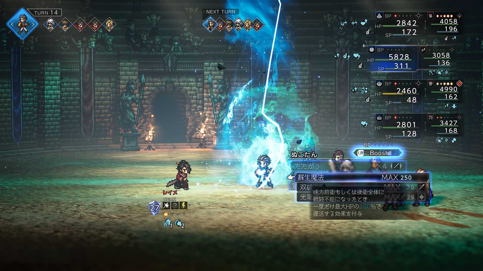 この蘇生魔法マジで優秀。SP250とトンデモナイ量使うのが欠点ですが…