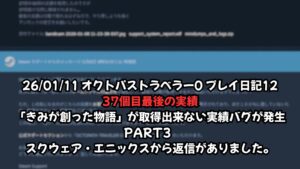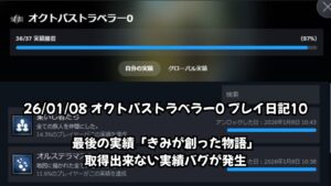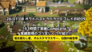 26/01/08 オクトパストラベラー0 プレイ日記09 143時間で実績Complete?実績取得のコツをいくつか紹介✨