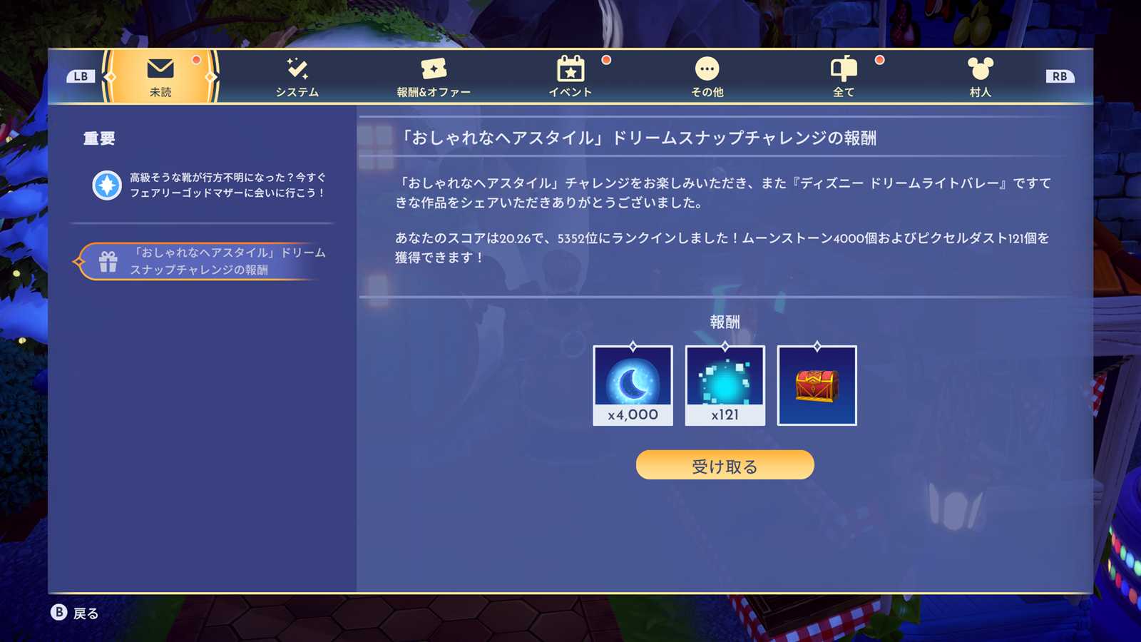 26/01/28(水) ディズニードリームライトバレー ドリームスナップ「おしゃれなヘアスタイル」 ×4000 5352位 S20.26