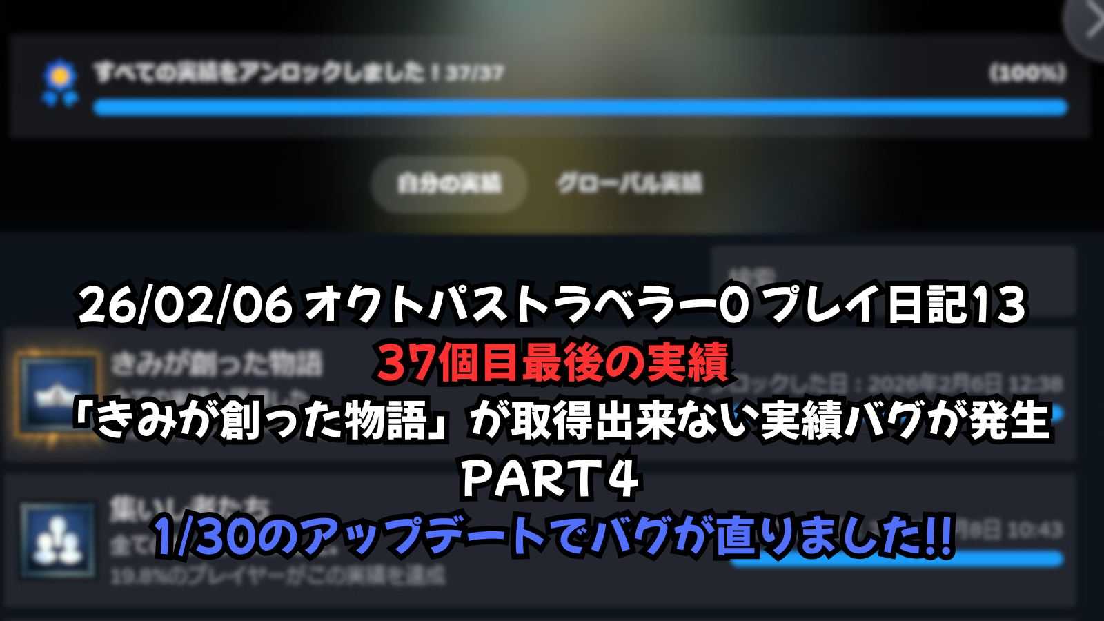 26/01/11 Steam版 オクトパストラベラー0 37個目の実績「きみが創った物語」が取得出来ないバグが発生 P…