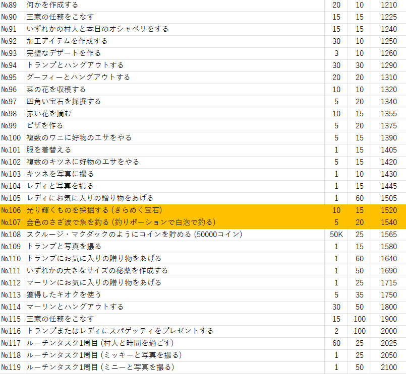 前回「魔女のススメ」スターパスでも全74個(ルーチンタスク除く)だったので