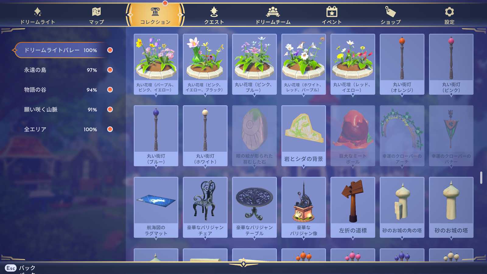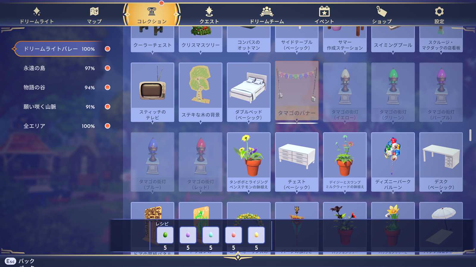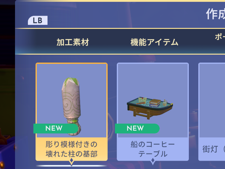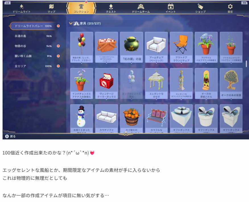 このドリームパックをクリアしないと手に入らないアイテム&作成出来ない家具が複数あります。