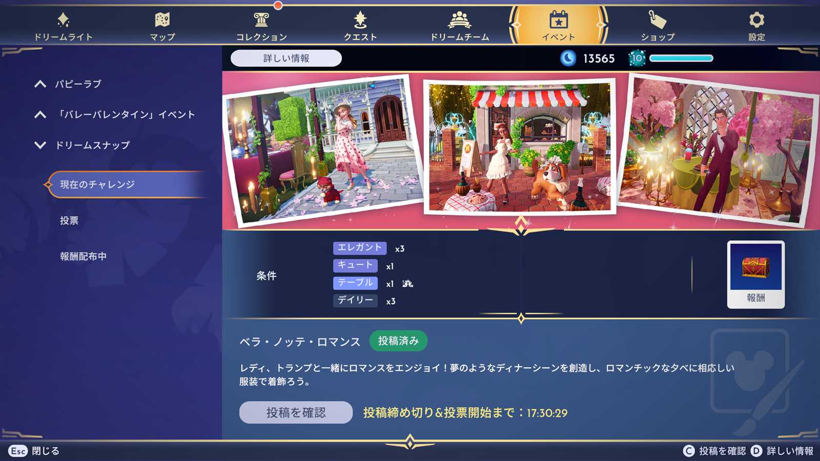 ・「舞踏会の夢ドリームパック」をクリア