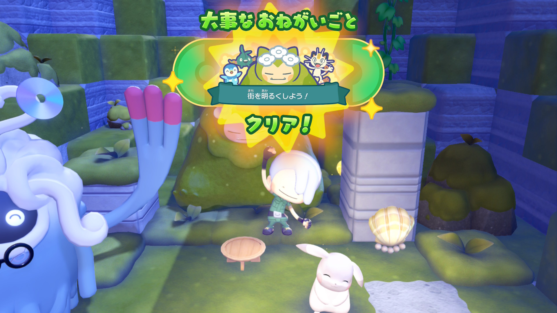 今回はカビゴンのクエスト「街を明るくしよう」までクリア