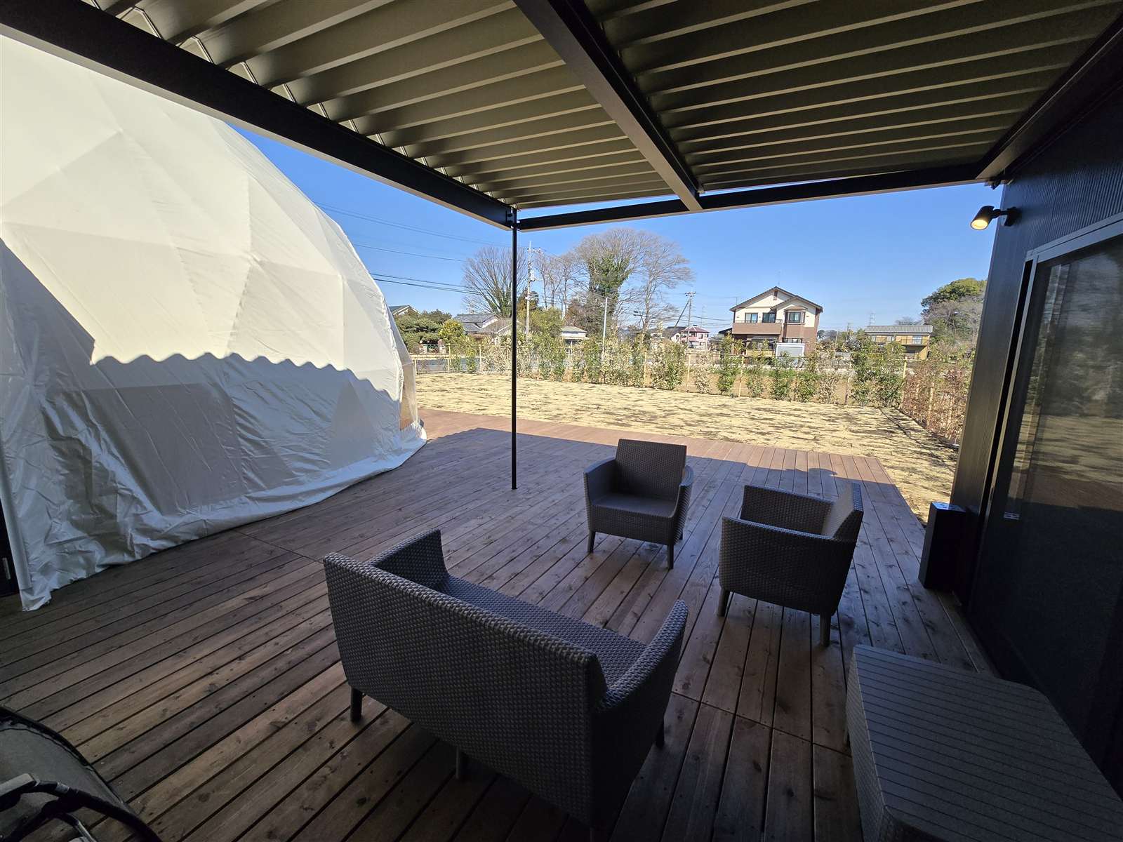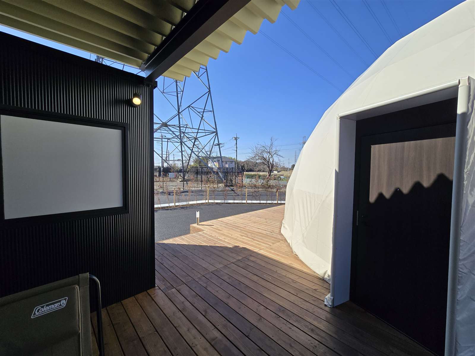 グランピングとグランピングの間がほとんど無いのと、庭に壁が無いので
