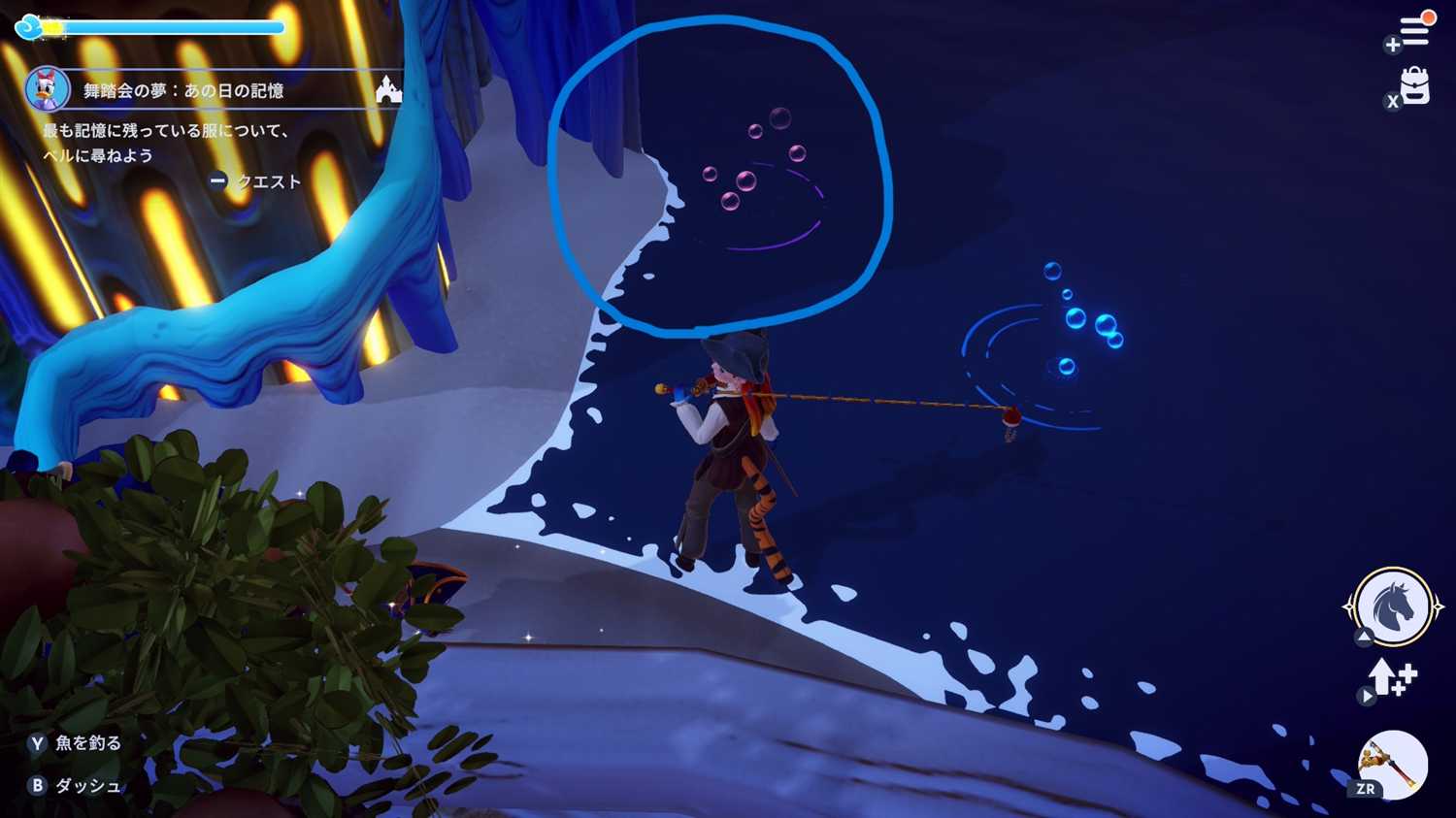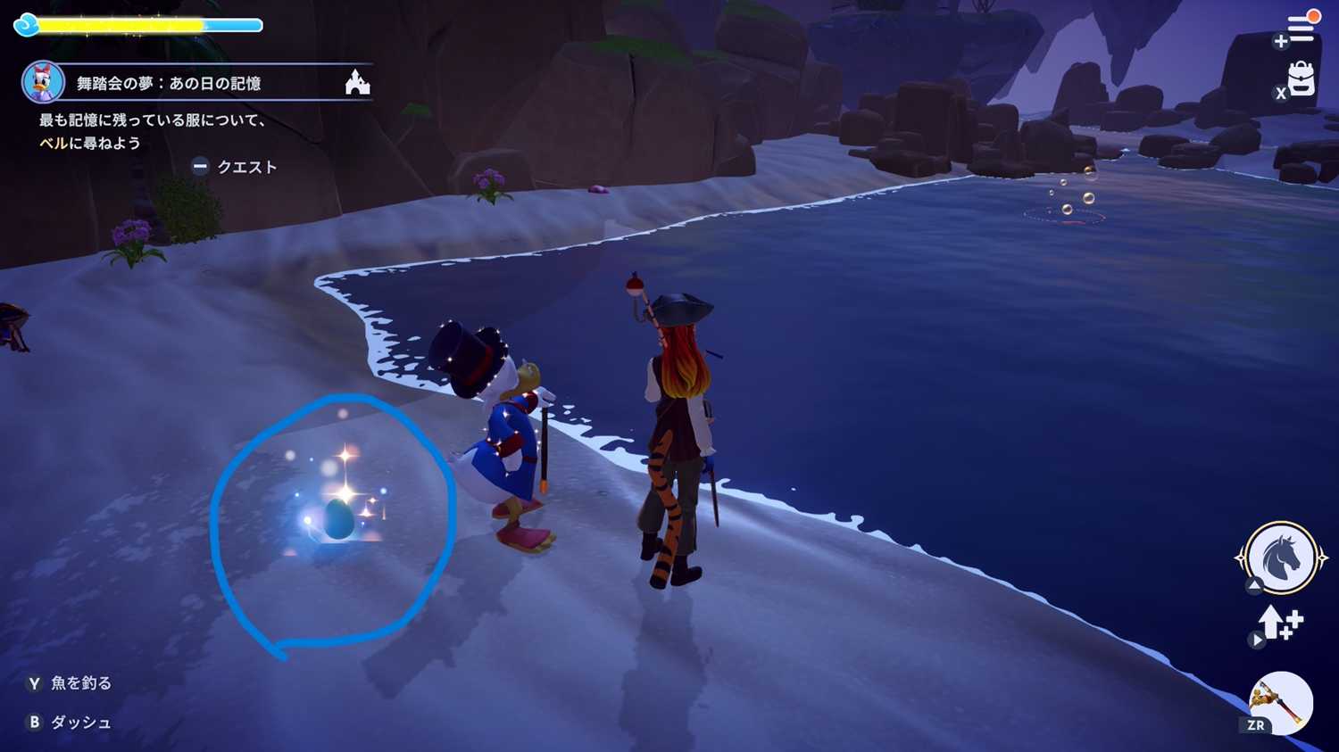 輝きの浜辺で紫色の泡からグリーンのたまごを釣り上げられます