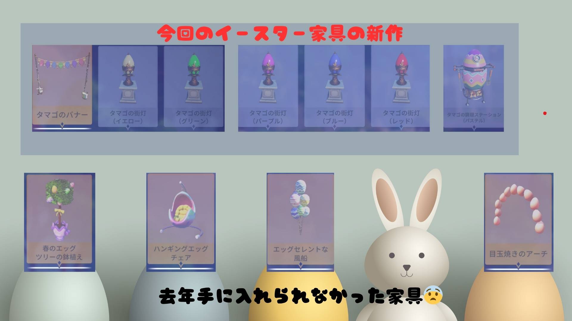 前回のイースターイベントより一部のたまごが入手しやすくなってたり