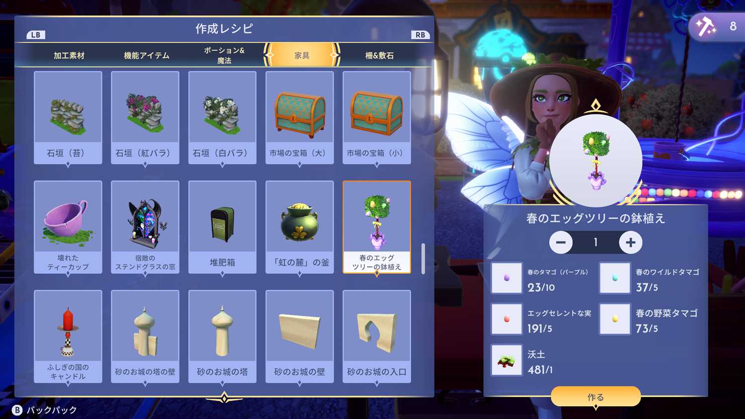ウォーリーのクエストを全部クリアしたら「春のエッグツリーの鉢植え」が登場した気がする。